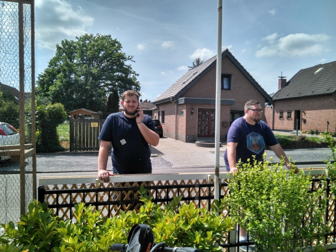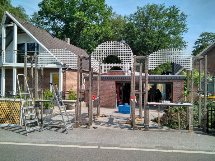 Die Königsburg wird aufgebaut und bekränzt.